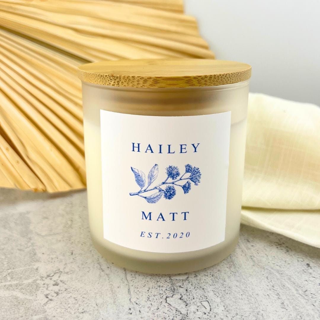 Custom Botanical Wedding Gift- 8oz Soy Wax Candle