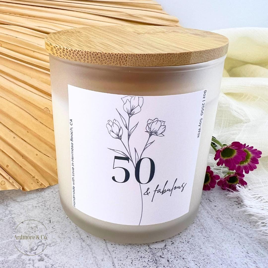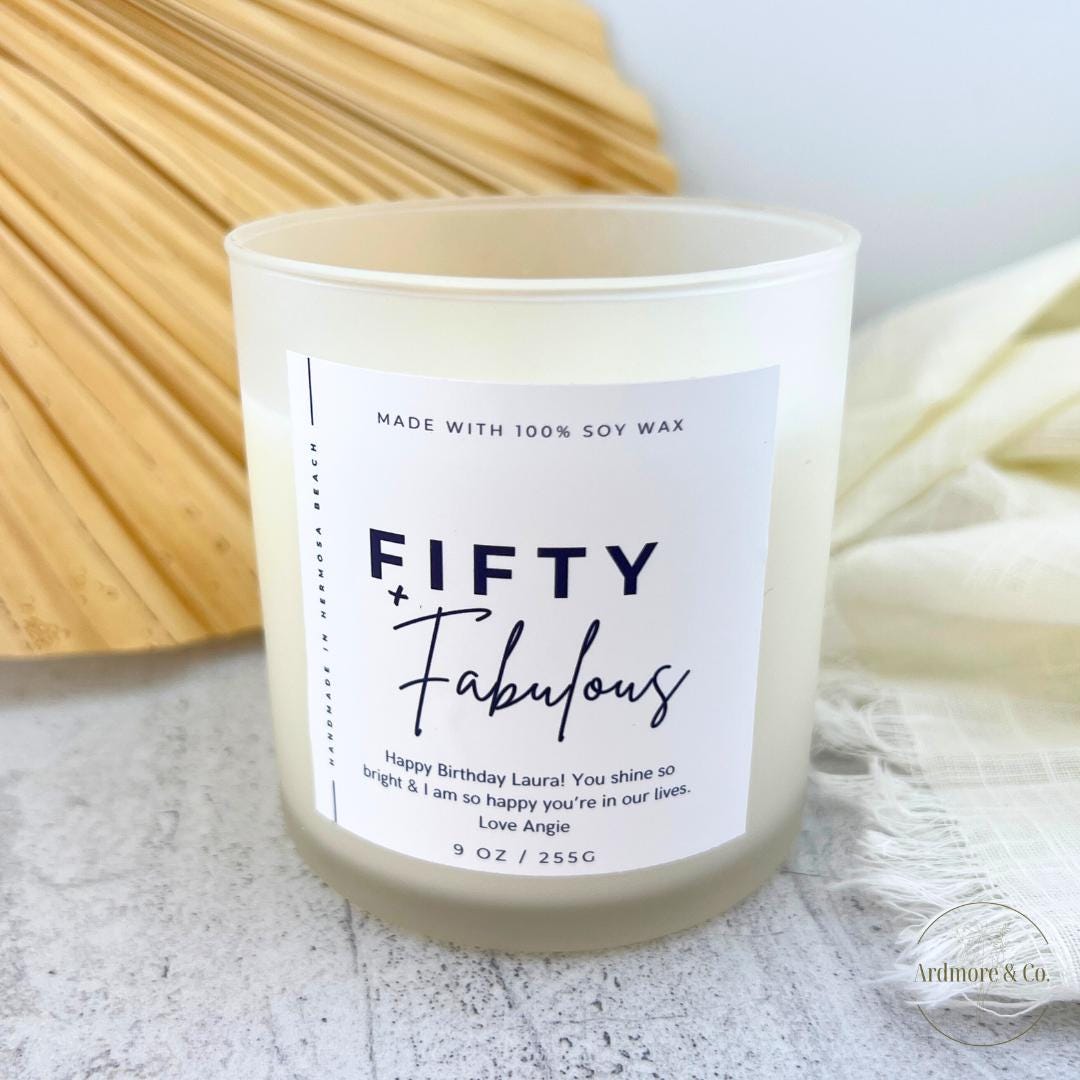 Custom 'Fifty & Fabulous' Birthday 8oz Soy Wax Candle