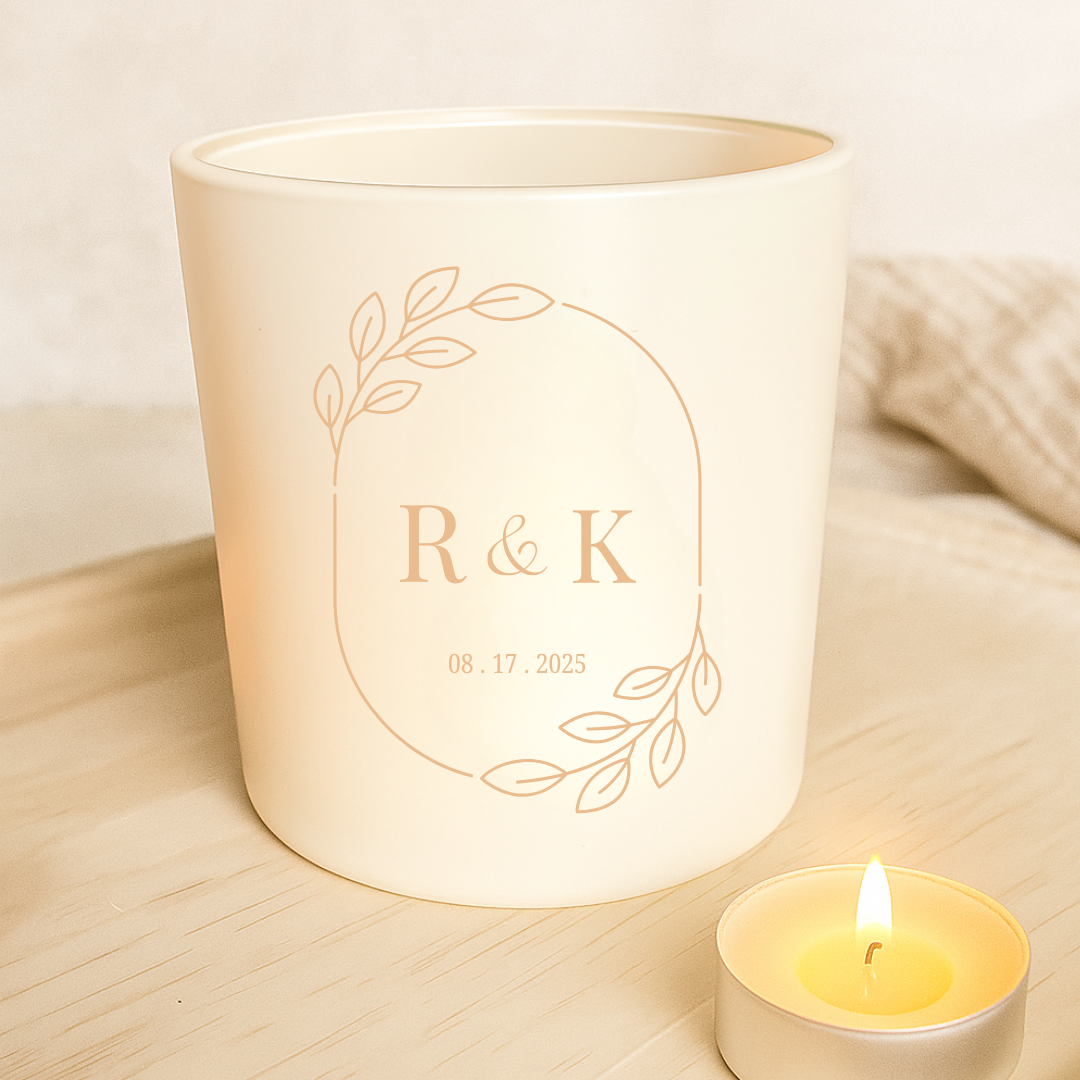 Custom Engraved Botanical Initials Candle or Tealight Gift Set