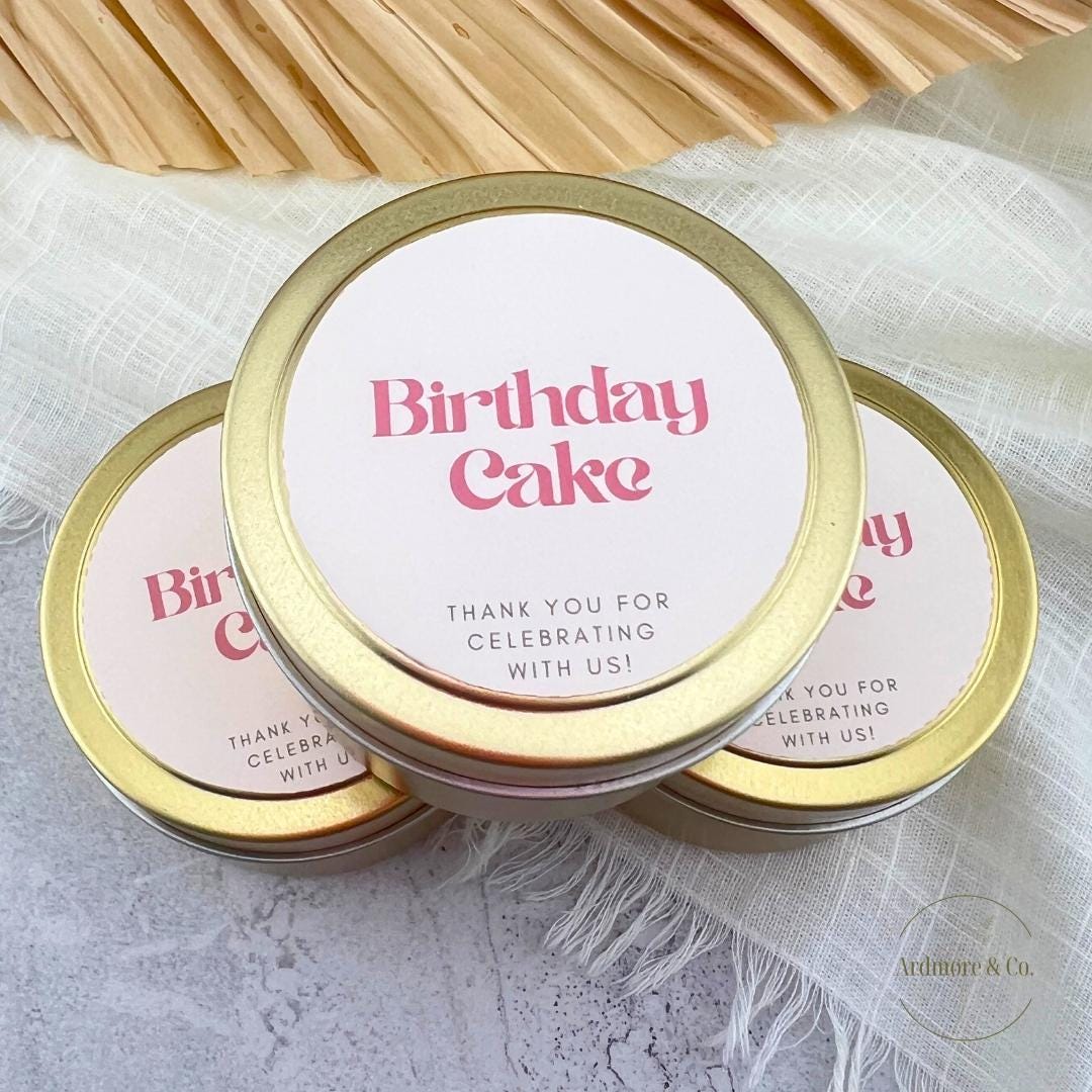 Our bulk Birthday Cake candle favor tins are the perfect personalized guest favors for any birthday party! Customize your label & candle scent to add a warm, personal touch to your special day – handcrafted with love and designed to be keepsake-worthy gifts for your guests. The vanilla scent is perfect for a "birthday cake" smell!