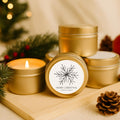 Each 2oz or 4oz mini candle is hand-poured in Hermosa Beach, California with 100% natural soy wax wedding favors, eco-friendly cotton wicks, and delicately scented with a clean fragrance that is subtle, elegant, and festive. The sleek gold tins and custom snowflake labels make these candles a timeless choice for Christmas wedding favors bulk and coworker holiday candle gifts.