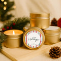 Our bulk gold tin candles with personalized Christmas plaid labels are the perfect touch for your holiday celebrations. Whether you’re planning a family Christmas party, a winter wedding, or a festive office gathering, these custom candle favors add warmth and charm to every table.