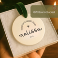 Our Custom Merry Christmas Christmas Ornament makes for the perfect stocking stuffer or holiday gift for your upcoming Christmas Party! Personalized with your gift recipient's name and holiday year this little ornament is a keeper.