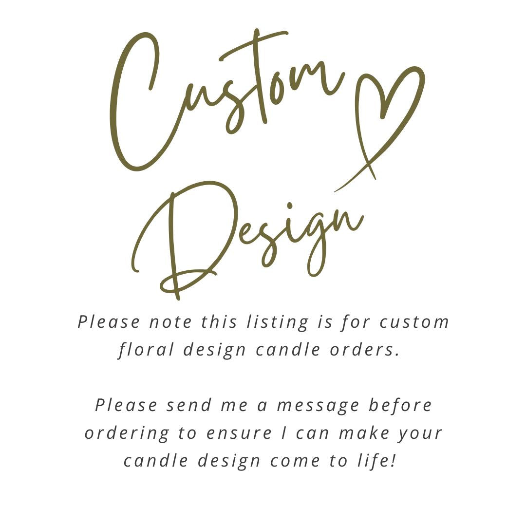 **PLEASE NOTE THIS LISTING IS FOR CUSTOM DESIGNED CANDLES- PLEASE ENSURE TO SEND ME A MESSAGE BEFORE PLACING YOUR ORDER TO MAKE SURE I CAN BRING YOUR DESIGN TO LIFE!**