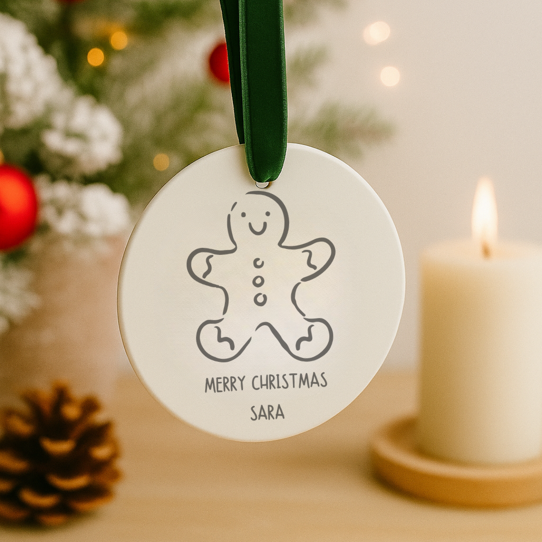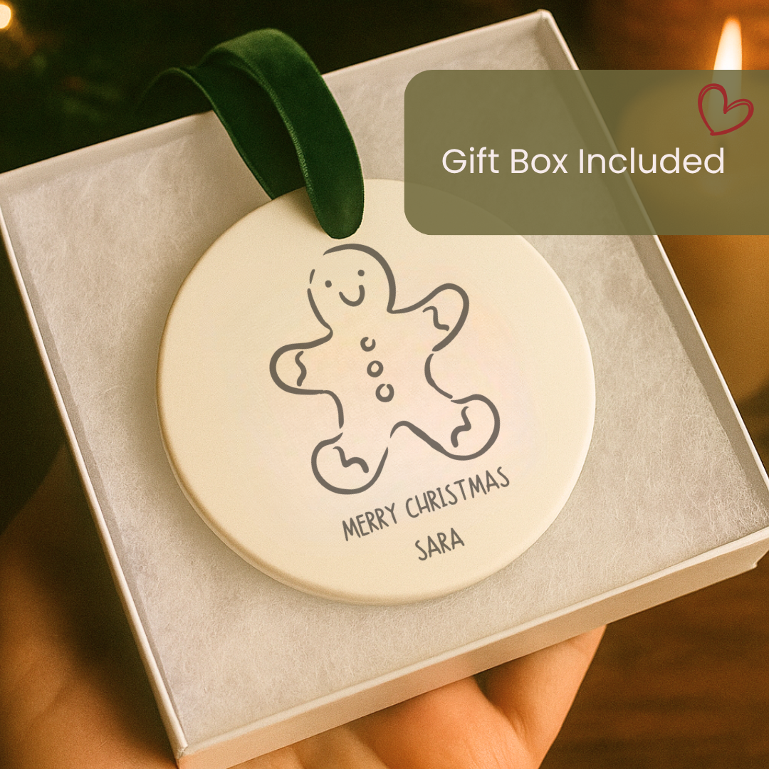 Sweet, simple, and full of holiday charm — our Custom Gingerbread Man Ornament is the perfect personalized touch for your Christmas tree or gifting season. Made from white ceramic and measuring 2.95" in diameter, each ornament is engraved with your custom name, date, or short message for a keepsake that’s as meaningful as it is adorable.