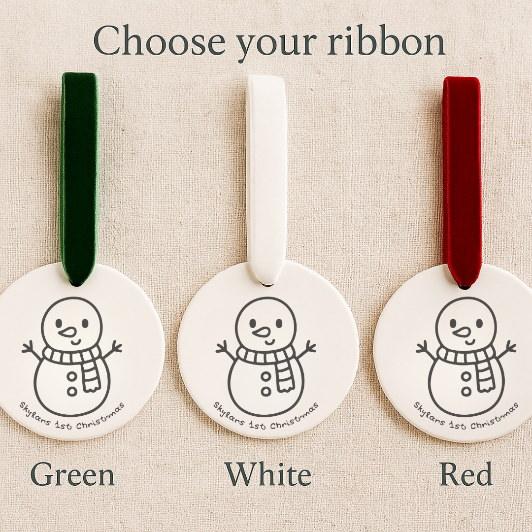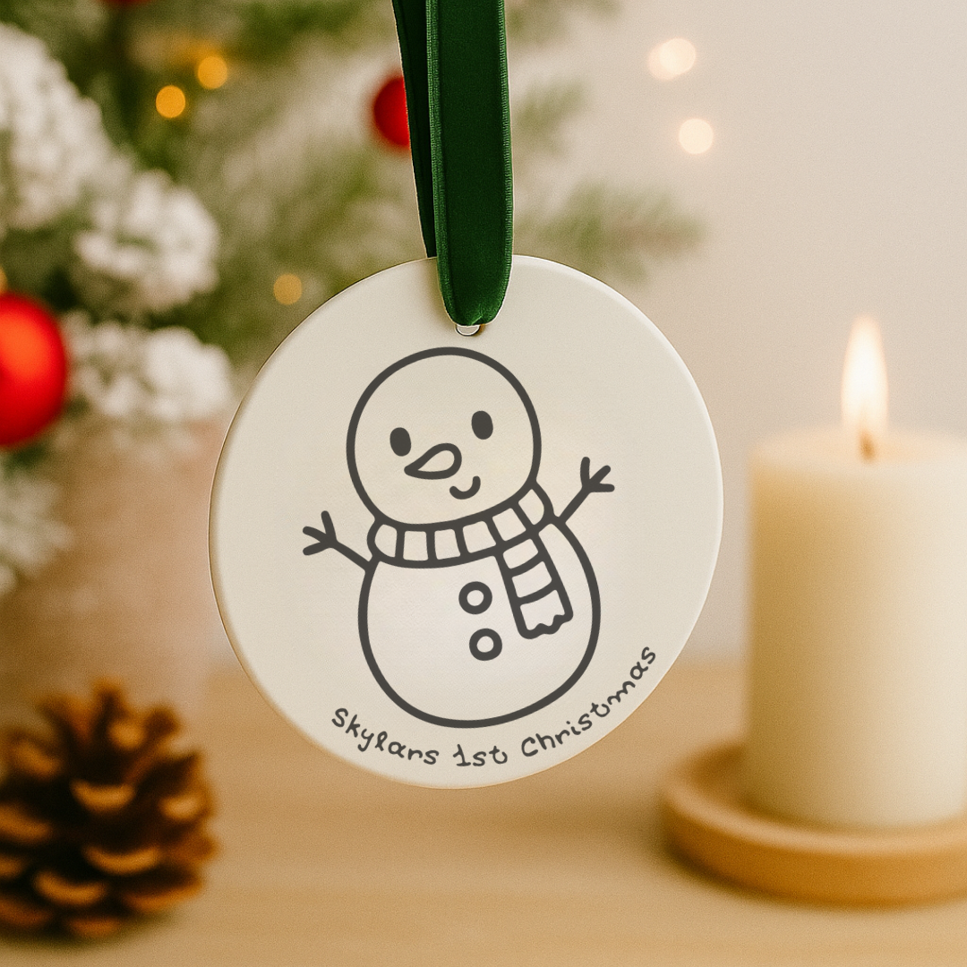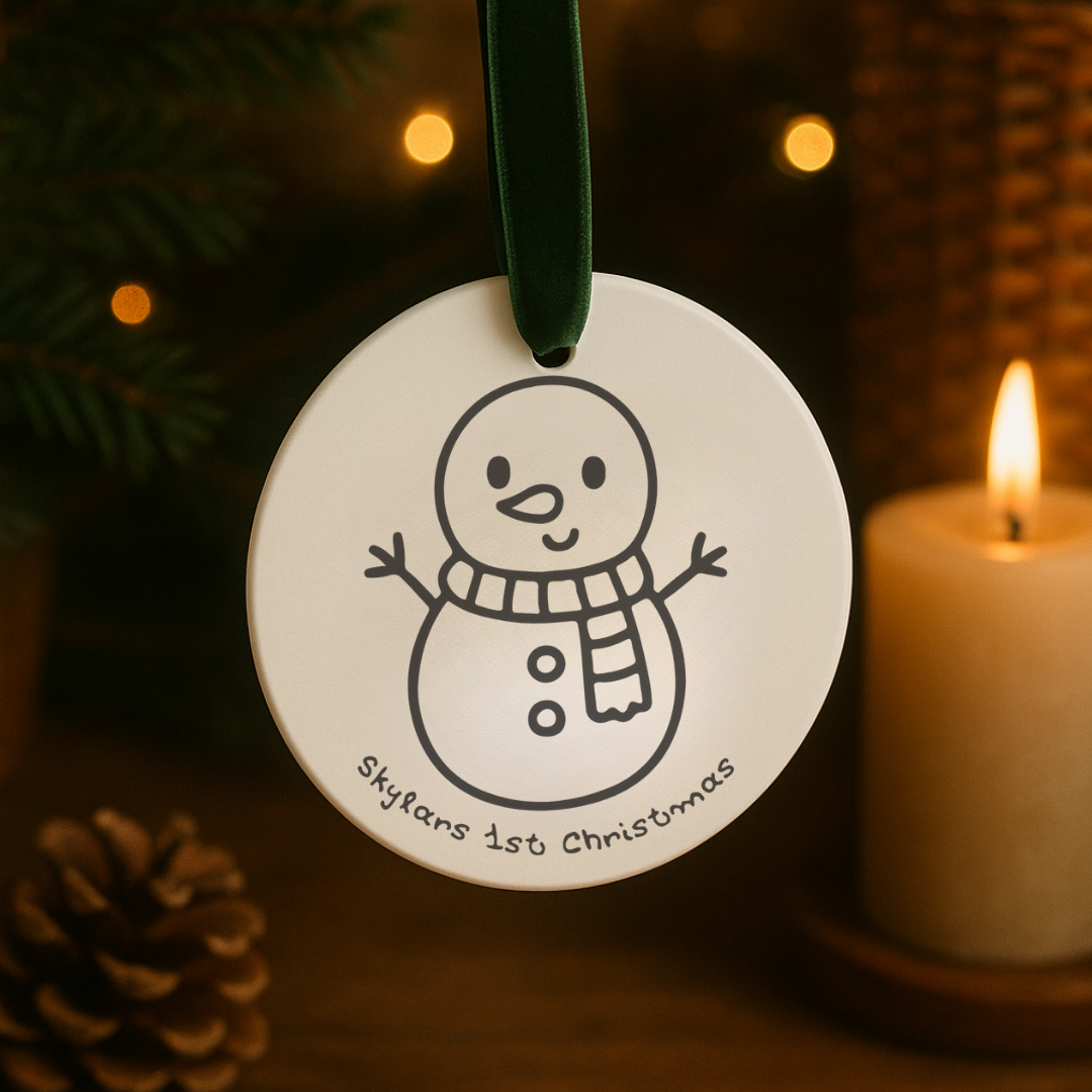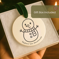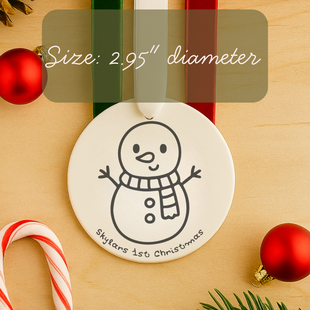 Celebrate your little one’s first holiday season with our Baby’s First Christmas Snowman Ornament — a sweet keepsake to cherish year after year. Crafted from white ceramic and measuring 2.95" in diameter, each ornament features a charming engraved snowman and your choice of personalized name or date.