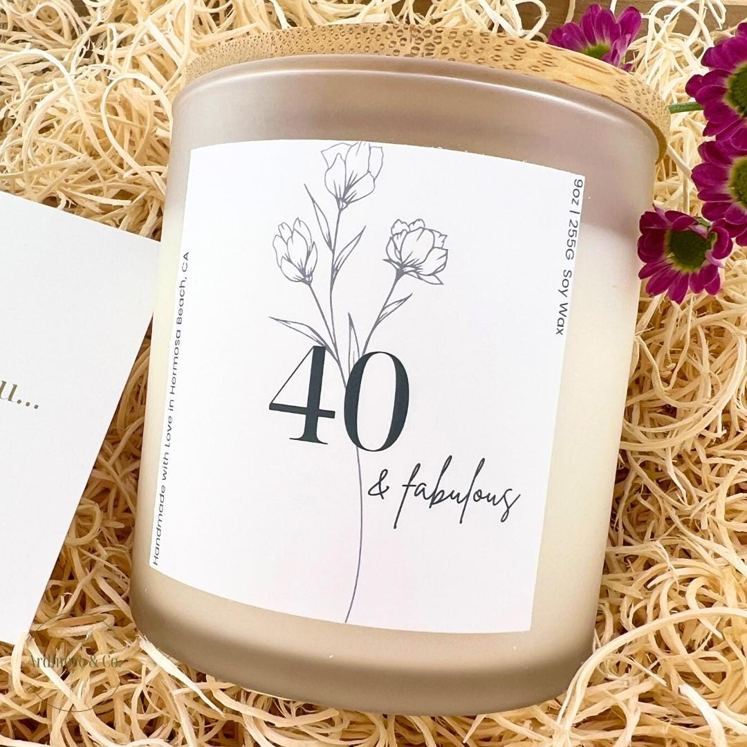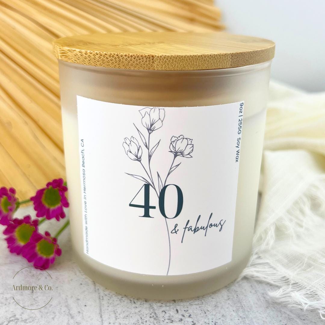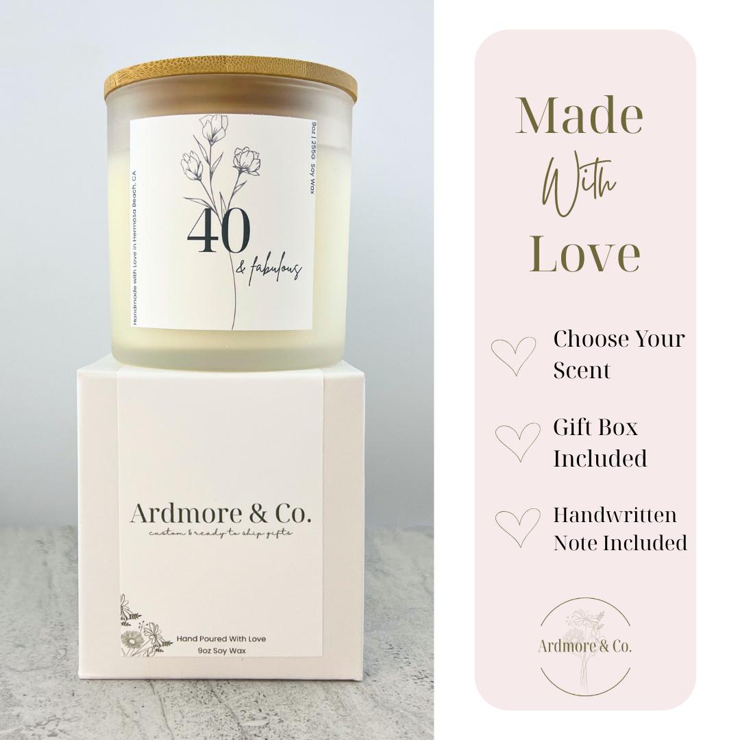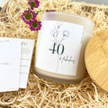 This custom candle makes the perfect gift! Designed to celebrate your friends 40th birthday, each candle is customized with a handwritten card & candle scent of choice.