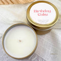 These 2oz or 4oz mini candles are handmade in Hermosa Beach , California with 100% natural soy wax, clean-burning eco wicks, and delicately scented with a clean fragrance – subtle, elegant, and perfect for a any celebration. Hand poured into gold tins, each candle is beautifully designed and customized with the label of your choice.