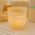 Celebrate your favorite person with a personalized “Sweater Weather” tealight gift set — the perfect cozy keepsake for friends who make life a little warmer. Each elegant glass tealight holder is engraved with the phrase “Sweater Weather” and can be personalized with a name or short message for a thoughtful touch. Pretty packaging makes it ready to gift straight out of the box.