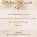 The holder is presented in a gift box with two eco-friendly soy wax tealights. Every set is crafted with love and attention to detail, making it the perfect personalized friendship gift for birthdays, just-because moments, or anyone who loves cozy season vibes.