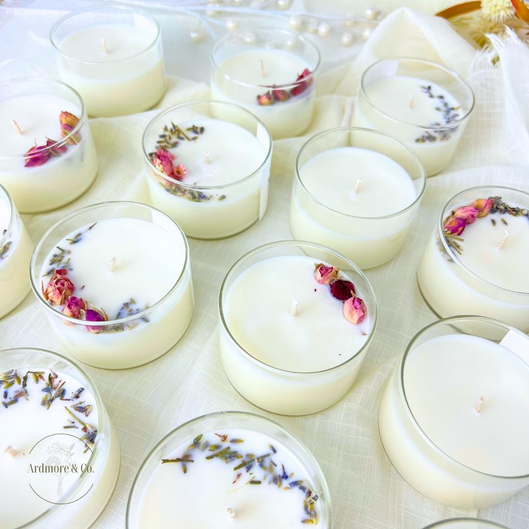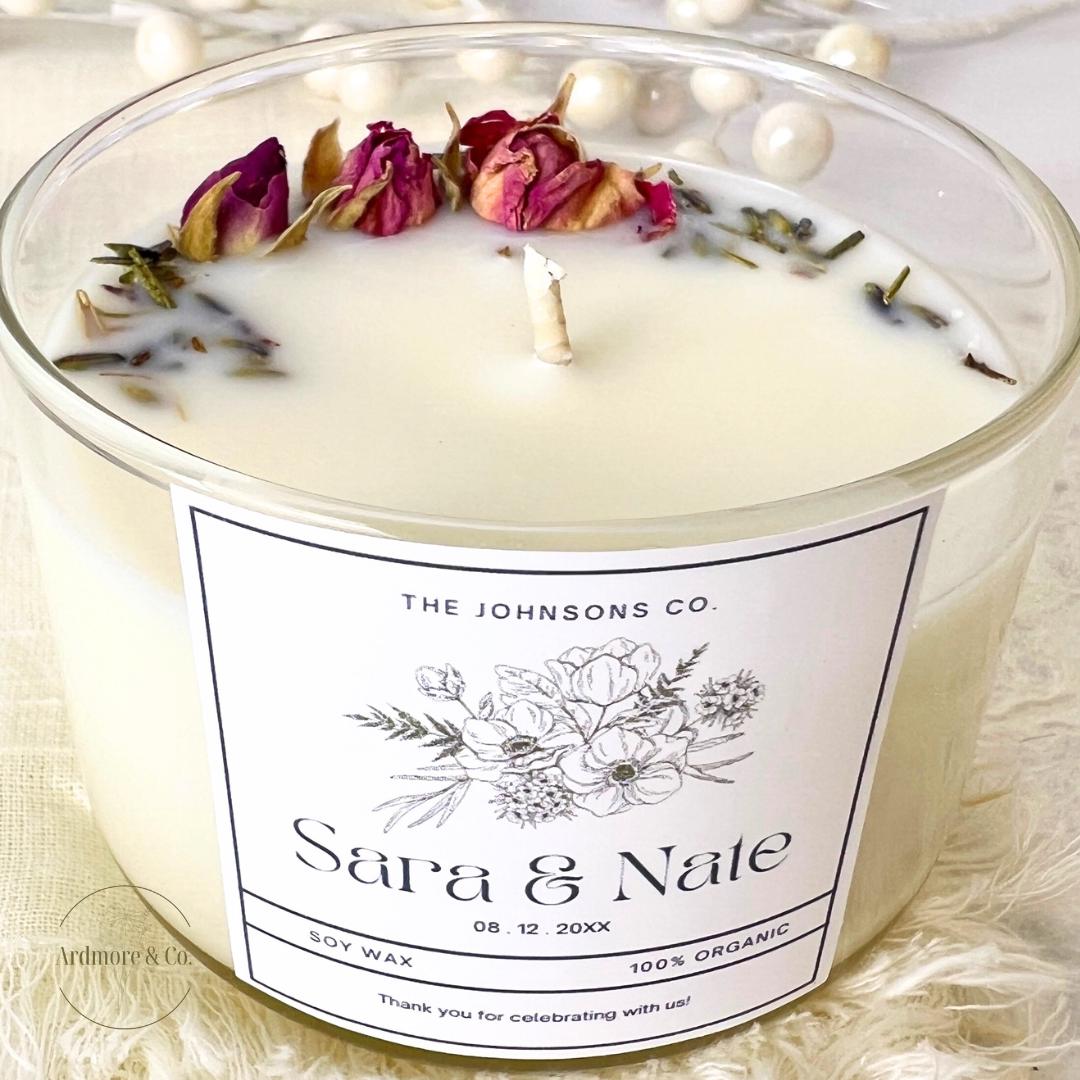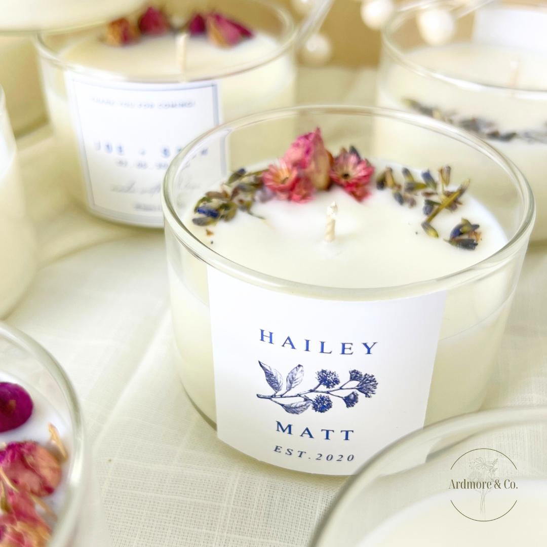 4oz Personalized Soy Candle Favors with Dried Flowers