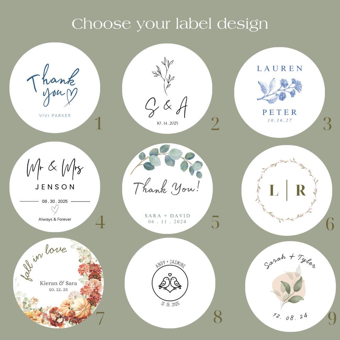 PERSONALIZATION: simply include your label choice & message/names/initials/date in the "note for seller" box at right before checkout. (Add your purchase to your cart, a side bar will appear to the right, click note for seller at the bottom of the side bar)