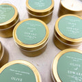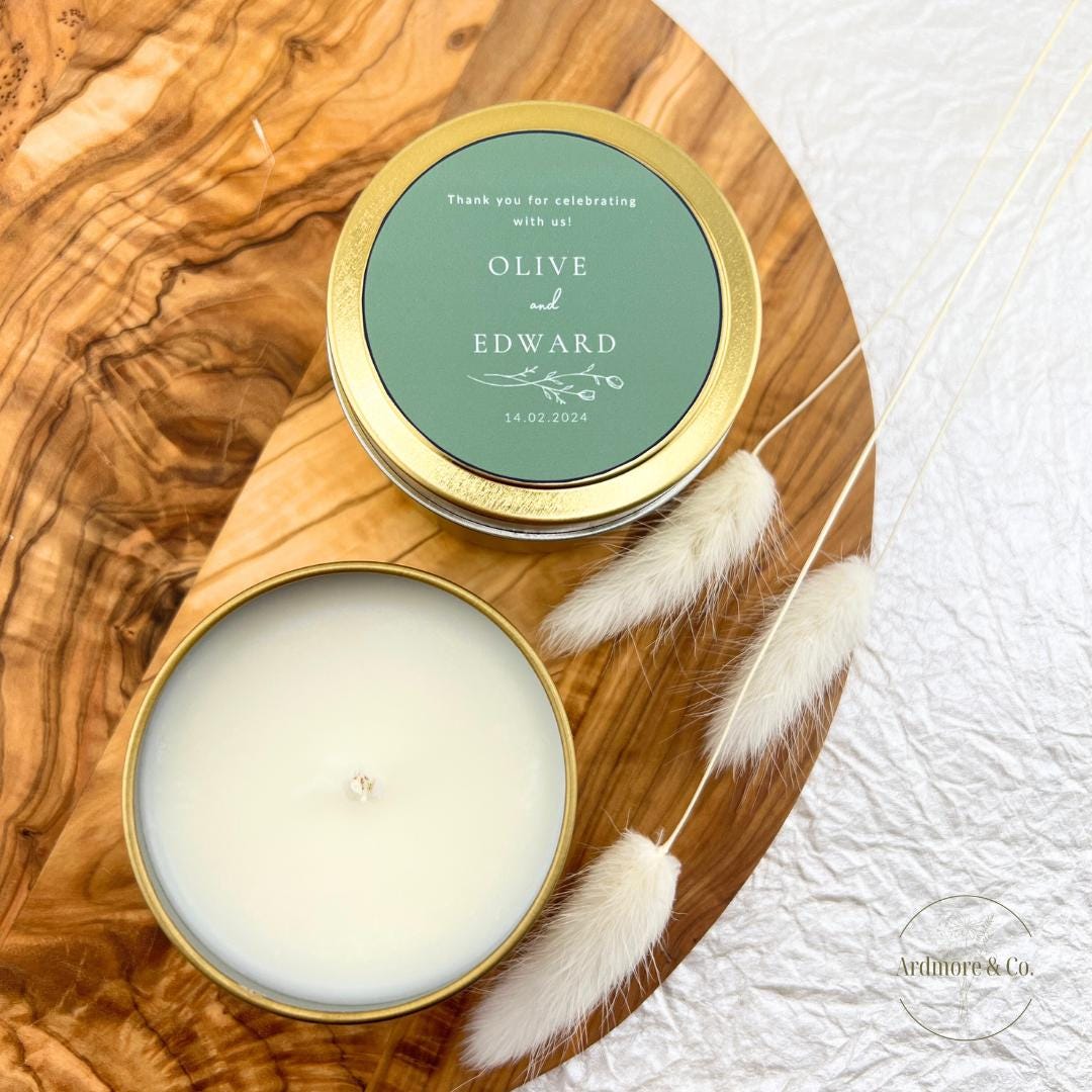 Our bulk candle favor tins are the perfect personalized guest favors for any occasion! Customize your label & candle scent to add a warm, personal touch to your special day – handcrafted with love and designed to be keepsake-worthy gifts for your guests.