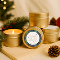 Each 2oz or 4oz gold tin candle is hand-poured in Hermosa Beach, California with 100% natural soy wax wedding favors, clean-burning eco wicks, and delicately scented with a light, clean fragrance. Designed with a blue and green plaid holiday label, these candles can be customized with your name, date, or scent – making them adorable keepsakes for any celebration.