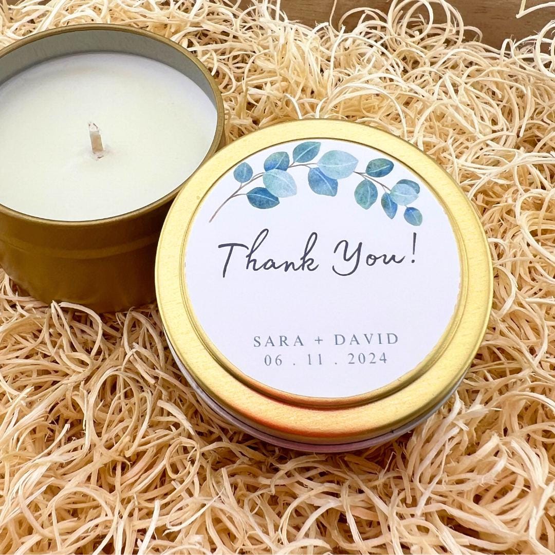 Our bulk eucalyptus candle favors are the perfect personalized guest favors for any occasion! Customize your label & candle scent to add a warm, personal touch to your special day – handcrafted with love and designed to be keepsake-worthy gifts for your guests.